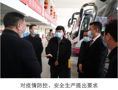 2021年2月9日下午,廣元市副市長彭洪帶領(lǐng)市交通運(yùn)輸局、市應(yīng)急管理局等部門到車站督導(dǎo)疫情防控、安全生產(chǎn)、民生物資保供等工作,并對奮戰(zhàn)在生產(chǎn)一線的員工進(jìn)行了春節(jié)前慰問。彭洪到車站疫情防控檢測點(diǎn)、車輛例檢、三品檢查等重點(diǎn)崗位進(jìn)行了現(xiàn)場督導(dǎo),并要求車站要做好春節(jié)期間秋冬季疫情防控及安全經(jīng)營生產(chǎn)工作。交旅集團(tuán)總經(jīng)理左和平,廣運(yùn)集團(tuán)黨委書記、董事長韓正茂等陪同進(jìn)行了檢查。