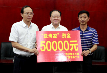 會議最后,何開金同志代表省總工會向集團(tuán)公司頒發(fā)了5萬元“送清涼”慰問資金,并祝愿廣運(yùn)的明天更美好。