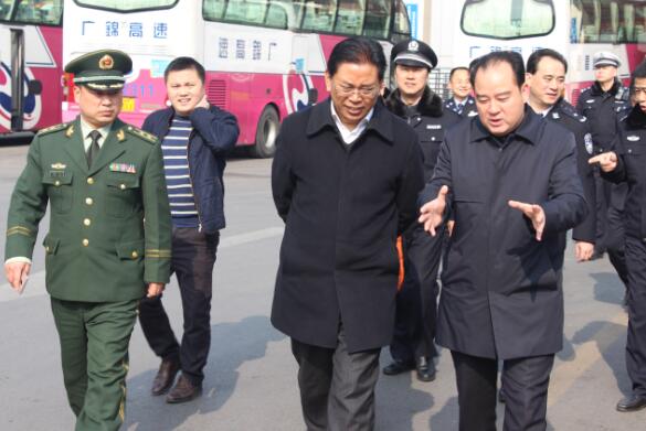 市委常委馮安富同副市長、市公安局長胡國民蒞臨廣運集團廣元市汽車客運站調研春節(jié)道路運輸安全工作