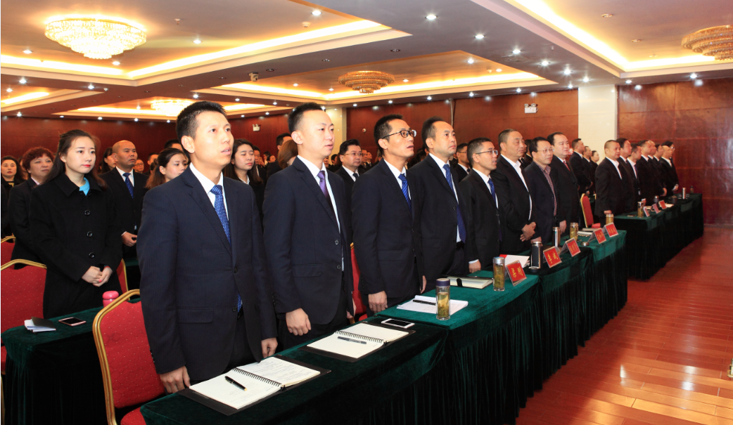 全體黨員干部職工跟隨大會(huì)議程齊唱國(guó)歌