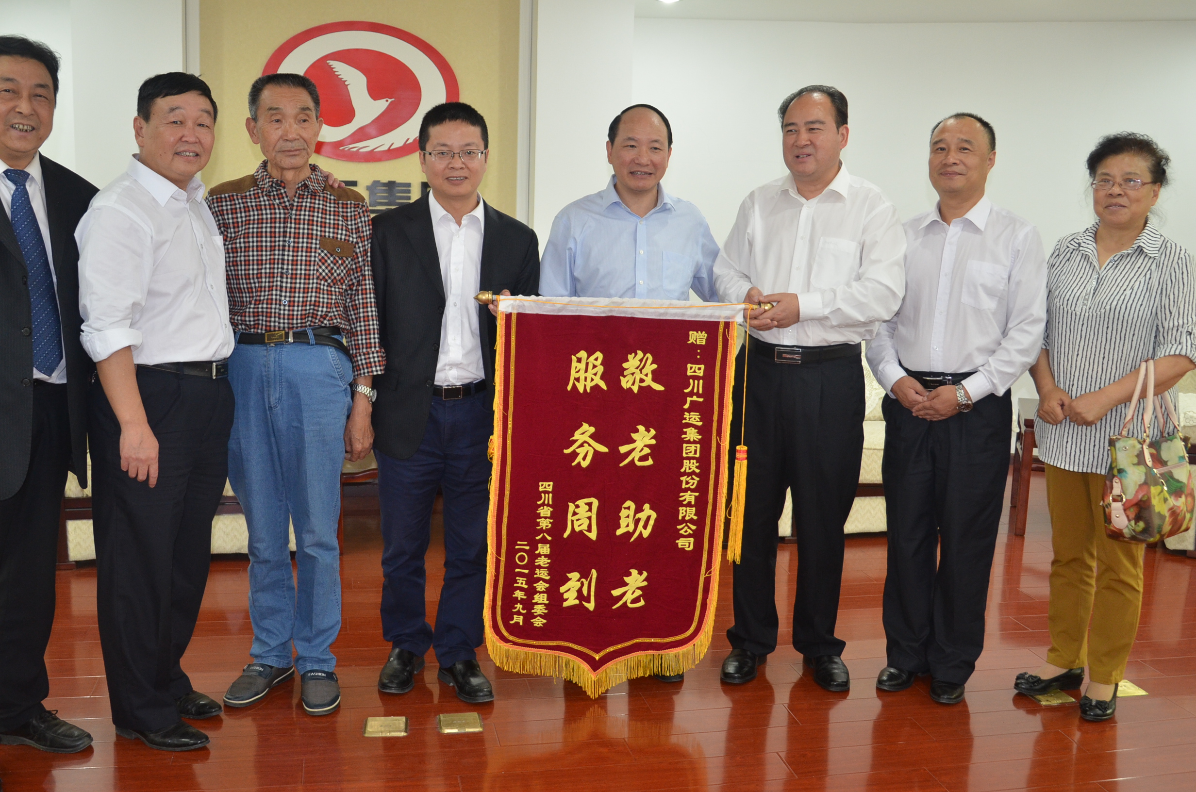 1014日下午,原廣元市人大黨組副書記、副主任,現(xiàn)老體協(xié)副主席陳杰章代表省第八屆老運(yùn)會(huì)組委會(huì)向集團(tuán)贈(zèng)送“敬老助老,服務(wù)周到”錦旗一面,感謝集團(tuán)及集團(tuán)下屬公交公司、交通國(guó)際旅行社為老運(yùn)會(huì)健身腰鼓比賽在廣元成功舉辦做出的的積極貢獻(xiàn)。