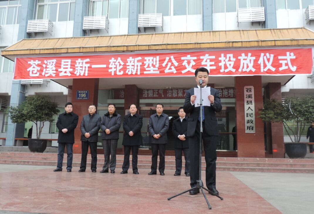 2月2日上午9時(shí),蒼溪縣新一輪新型環(huán)保公交車投放運(yùn)營(yíng)儀式在同心廣場(chǎng)舉行。蒼溪縣委書記何海生宣布蒼溪縣新型環(huán)保公交車正式投入運(yùn)營(yíng)。蒼溪縣委副書記馮明,副縣長(zhǎng)伊軍、人大主任劉榮孝、政協(xié)黨組書記朱國(guó)勇等四大班子領(lǐng)導(dǎo),集團(tuán)公司黨委書記、董事長(zhǎng)韓治成、總經(jīng)理秦勇、副總經(jīng)理朱蘭徽出席啟動(dòng)儀式。伊軍主持啟動(dòng)儀式。