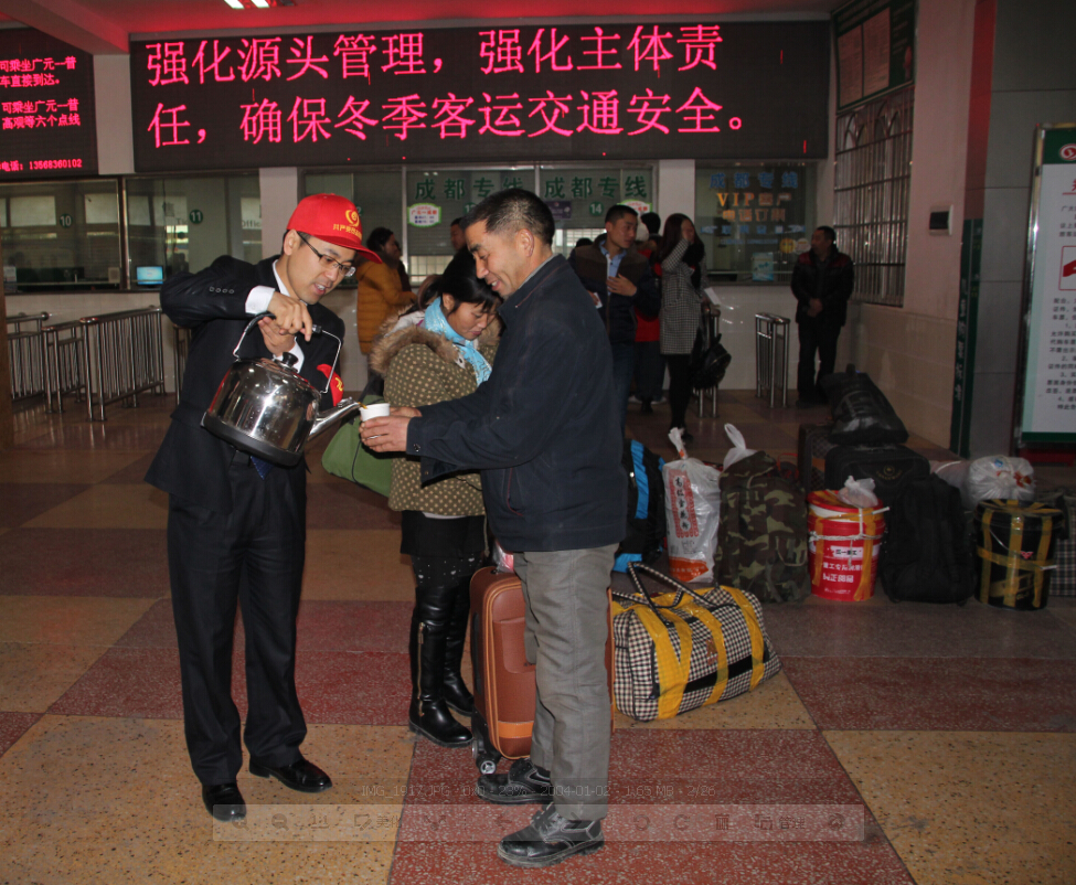 12月27日上午,在黨委書記、董事長韓治成的帶領(lǐng)下,集團(tuán)班子成員、機(jī)關(guān)部分黨員和市客運(yùn)站共產(chǎn)黨員服務(wù)隊(duì)組建的黨員義工隊(duì)伍聯(lián)合交旅集團(tuán)在南河車站開展了以“紅紅姜糖水,情暖旅客心”為主題的黨員干部做義工、為民服務(wù)見行動(dòng)黨員志愿服務(wù)活動(dòng),20余名黨員干部以實(shí)際行動(dòng)服務(wù)群眾。持續(xù)推進(jìn)群眾路線教育實(shí)踐活動(dòng)深入扎實(shí)、富有成效的開展。