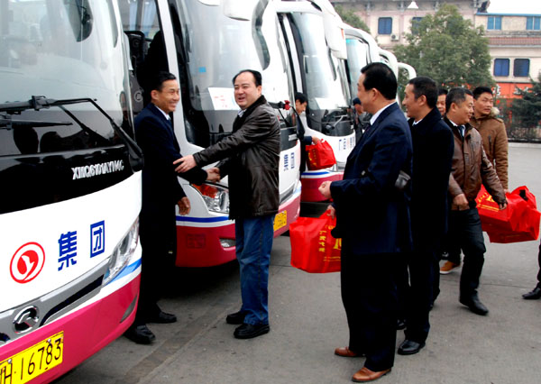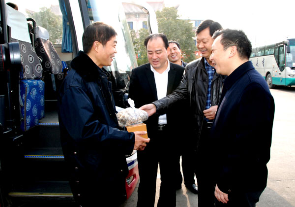 1月9(大年三十)上午,副市長陳凱、市交通局王國培一行在廣運集團董事長、總經(jīng)理韓治成陪同下來到長途汽車客運站,看望慰問了廣元至南充、廣元至巴中、廣元到南部等班線駕駛員、安全檢查員及售票窗口工作人員等,致以新年的問候并送上了慰問品。