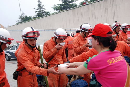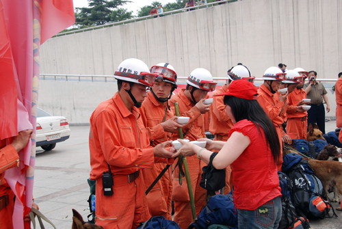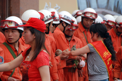 5月17日,第一批到青川縣抗震救災(zāi)的人民子弟
