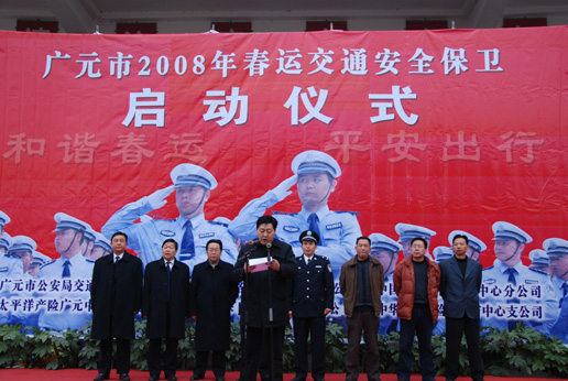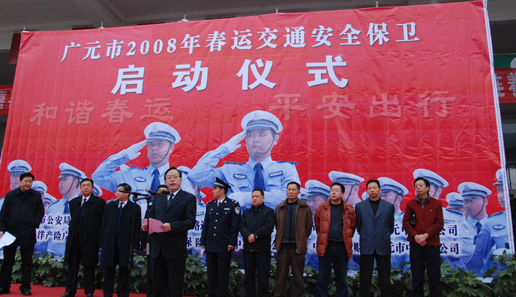 廣元市2008年春運(yùn)啟動(dòng)儀式1月23日在廣元市汽車客運(yùn)站內(nèi)舉行,市政府柳副秘書長(zhǎng)主持啟動(dòng)儀式