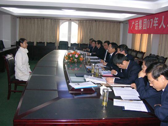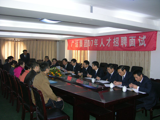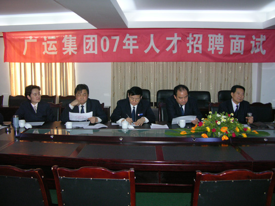 2007年11月24日廣運(yùn)集團(tuán)舉行07年人才招聘面試會(huì),集團(tuán)公司領(lǐng)導(dǎo)及相關(guān)部門負(fù)責(zé)人參加面試會(huì),共有26名大學(xué)生參加招聘面試。