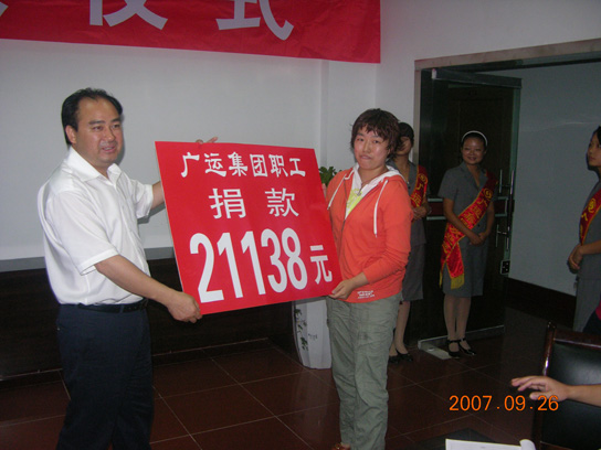 9月26日,廣運集團工會組織為旅游公司職工呂丹捐款捐贈儀式在旅游公司隆重舉行,集團公司董事長、總經(jīng)理韓治成代表全司職工把捐款21138元送到呂丹手中,集團公司紀委書記、副總經(jīng)理宋義、總經(jīng)理辦、政治部、行政管理部負責人及廣元片區(qū)各單位書記(工會主席)和旅游公司全體工作人員參加儀式。