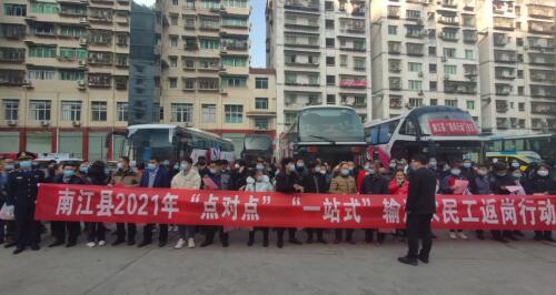 “復(fù)工增產(chǎn)雙發(fā)展,抗疬忙春有序排!2021年2月20日,為落實(shí)疫情防控并有序做好企業(yè)復(fù)工復(fù)產(chǎn)工作的決策部署,全力配合復(fù)工企業(yè)做好農(nóng)民工返崗工作,四川廣運(yùn)集團(tuán)南江有限公司汽車站全力做好農(nóng)民工返崗運(yùn)輸服務(wù)保障、服務(wù)企業(yè)復(fù)產(chǎn)用工需求,進(jìn)行“點(diǎn)對(duì)點(diǎn)、一站式”輸送農(nóng)民工返崗行動(dòng)。