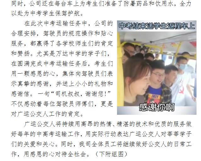 廣運(yùn)公交助力中考  莘莘學(xué)子暖心感謝