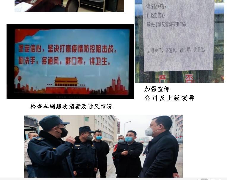 針對(duì)近期多地區(qū)發(fā)生的新型冠狀病毒感染肺炎疫情,公交分公司根據(jù)市委及集團(tuán)相關(guān)會(huì)議、文件精神要求,第一時(shí)間落實(shí)部署,主動(dòng)配合防治工作:一是利用QQ、微信工作群傳達(dá)省市及集團(tuán)關(guān)于新型冠狀病毒感染的肺炎疫情防控工作的會(huì)議、文件精神,安排部署了防控工作;二是加強(qiáng)組織領(lǐng)導(dǎo),成立領(lǐng)導(dǎo)小組,落實(shí)責(zé)任;三是結(jié)合實(shí)際制定疫情防控工作方案,落實(shí)了車(chē)輛消毒、人員安全防范、車(chē)輛運(yùn)輸?shù)戎攸c(diǎn)防控工作;四是加強(qiáng)宣傳,利用公交車(chē)視頻、車(chē)尾LED向市民宣傳防范知識(shí),擴(kuò)大影響,堅(jiān)定人民信心;五是加強(qiáng)監(jiān)督,強(qiáng)化落實(shí),為人民群眾度過(guò)安定祥和的春節(jié)而努力。