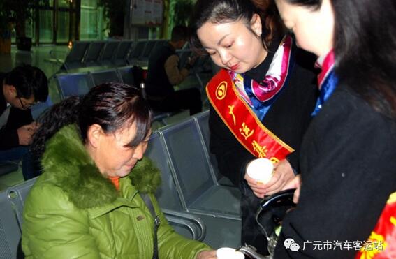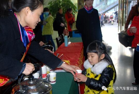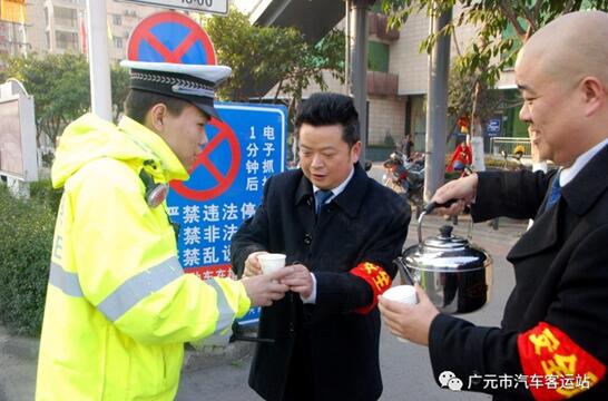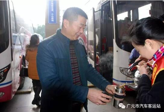 2017113,春運(yùn)開始的首日,廣元的天氣異常寒冷,由廣運(yùn)集團(tuán)廣元市汽車客運(yùn)站黨員干部職工組成的黨員服務(wù)隊(duì)來到售票廳、候車廳、站臺(tái)、車站廣場(chǎng)向旅客、執(zhí)勤的交警和特警、駕駛員送上一杯熱姜湯水,讓他們不再寒冷,并在車站售票廳為旅客解答疑問和搬運(yùn)行李。
