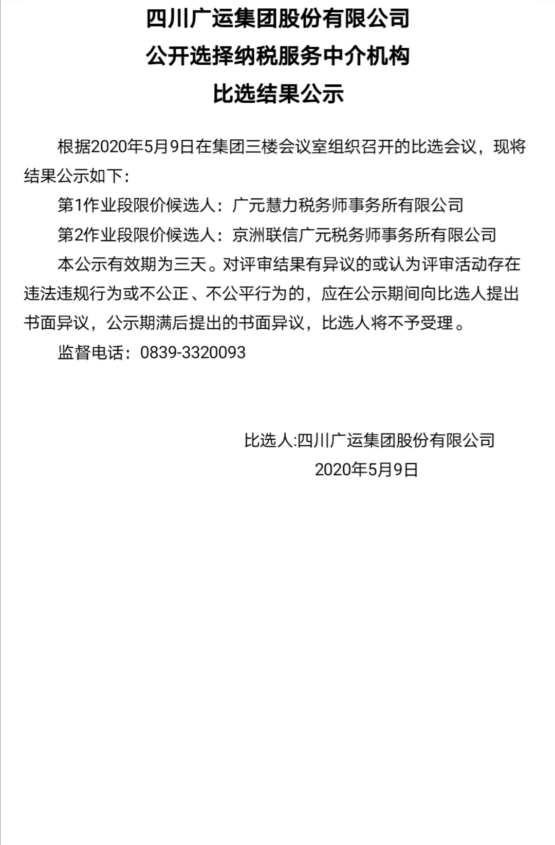 公開(kāi)選擇納稅服務(wù)中介機(jī)構(gòu)比選結(jié)果公示