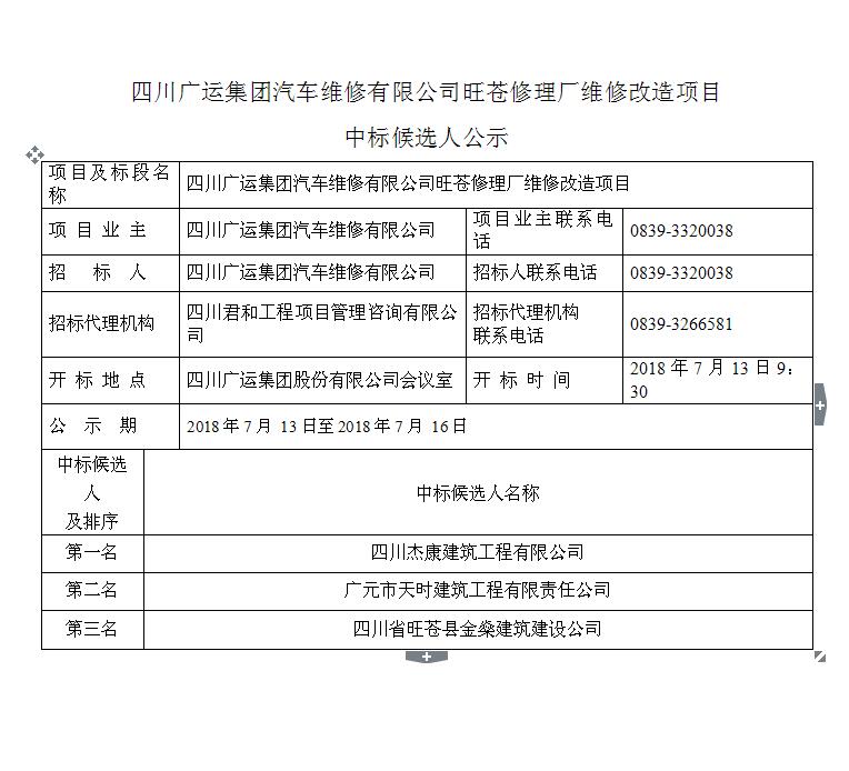 四川廣運集團汽車維修有限公司旺蒼修理廠維修改造項目