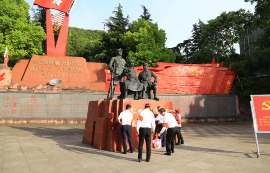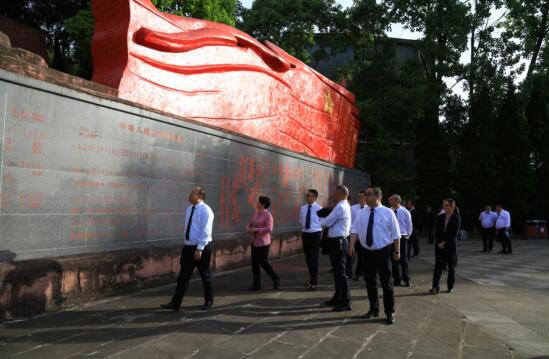 首先,全體黨員、入黨積極分子及青年職工來到紅四方面軍長征出發(fā)地——紅軍渡。在紅軍渡紀(jì)念碑前,面對鮮艷的黨旗重溫了入黨誓詞,并參觀了紅色教育基地。